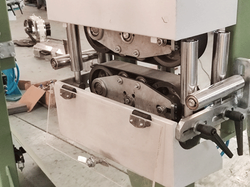 Two horizontal guide wheels are used, the meter wheel is plated with hard chrome, and the compression wheel is covered with polyurethane to increase the friction. The compression is controlled by the cylinder and controlled by the SMC pressure regulating valve. The meter is mechanically counted, with encoder output, which can be connected to customers PLC as an electronic meter signal